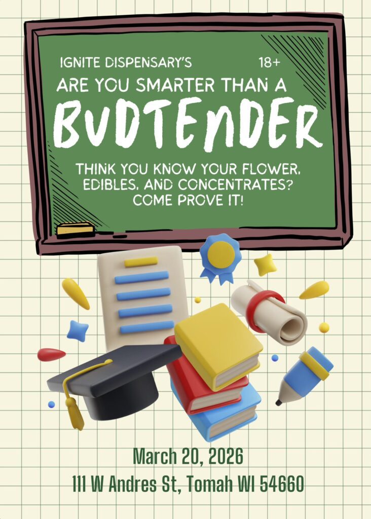 Join us at Ignite Dispensary in Tomah for Are You Smarter Than a Budtender? A free, in-store game night where you can put your cannabis knowledge to the test.