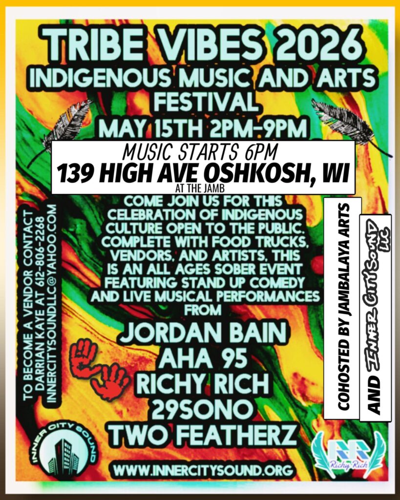 Tribe Vibes is an exciting new Indigenous Music and Arts Festival featuring over 18 different vendors and artisans from different tribes across the state along with live music and stand up comedy taking place right here at The Jamb by at 139 High Ave, Oshkosh, WI